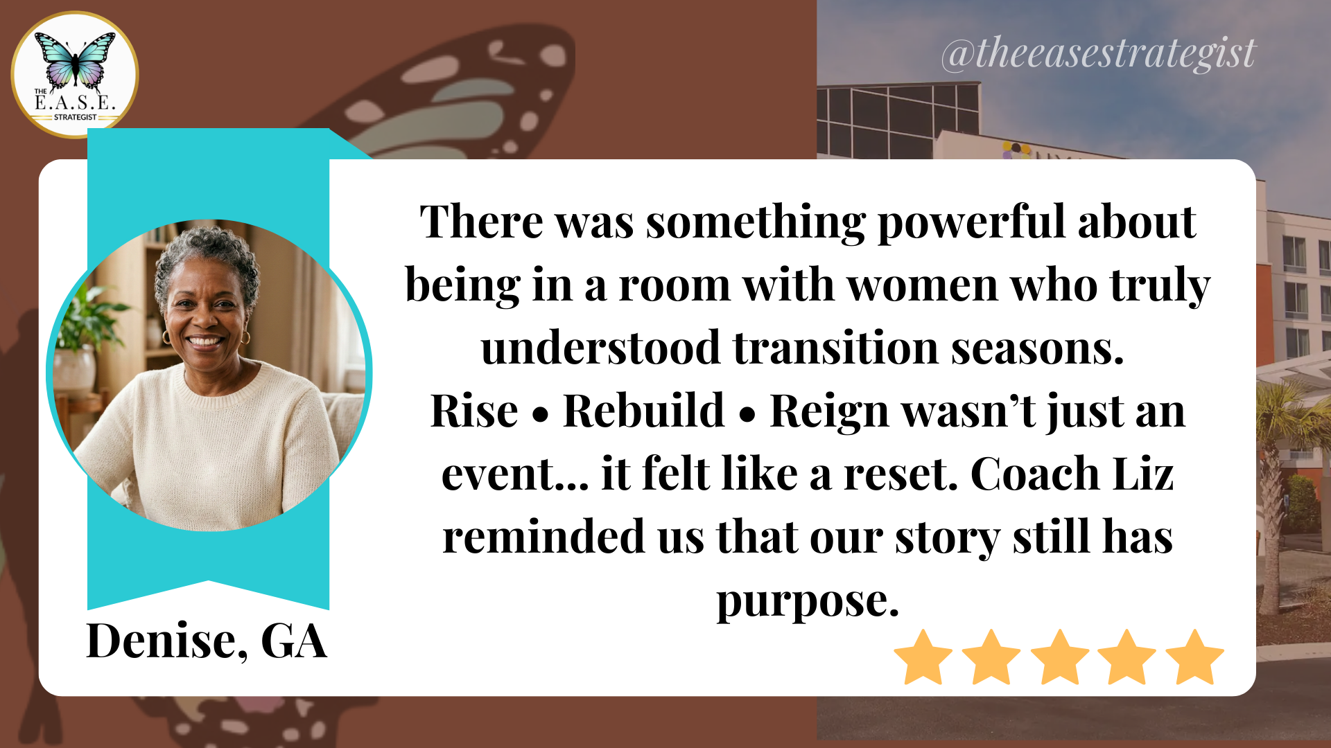 Determined to reclaim her power, Liz turned pain into purpose and setbacks into stepping stones. Through her own healing, she discovered a new way of living one rooted in awareness, self-care, empowerment, and elevation. What began as personal restoration became a calling to guide other women to rise, rebuild, and reign with clarity, confidence, and purpose.